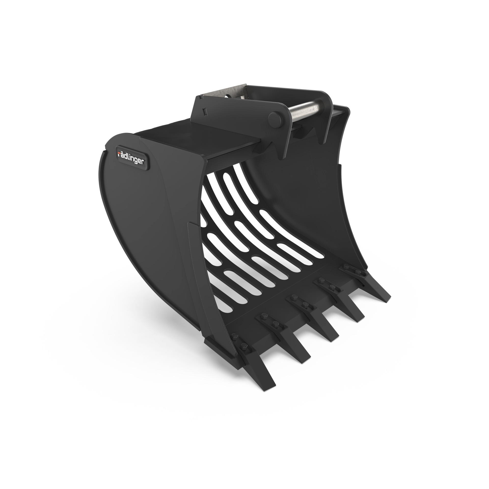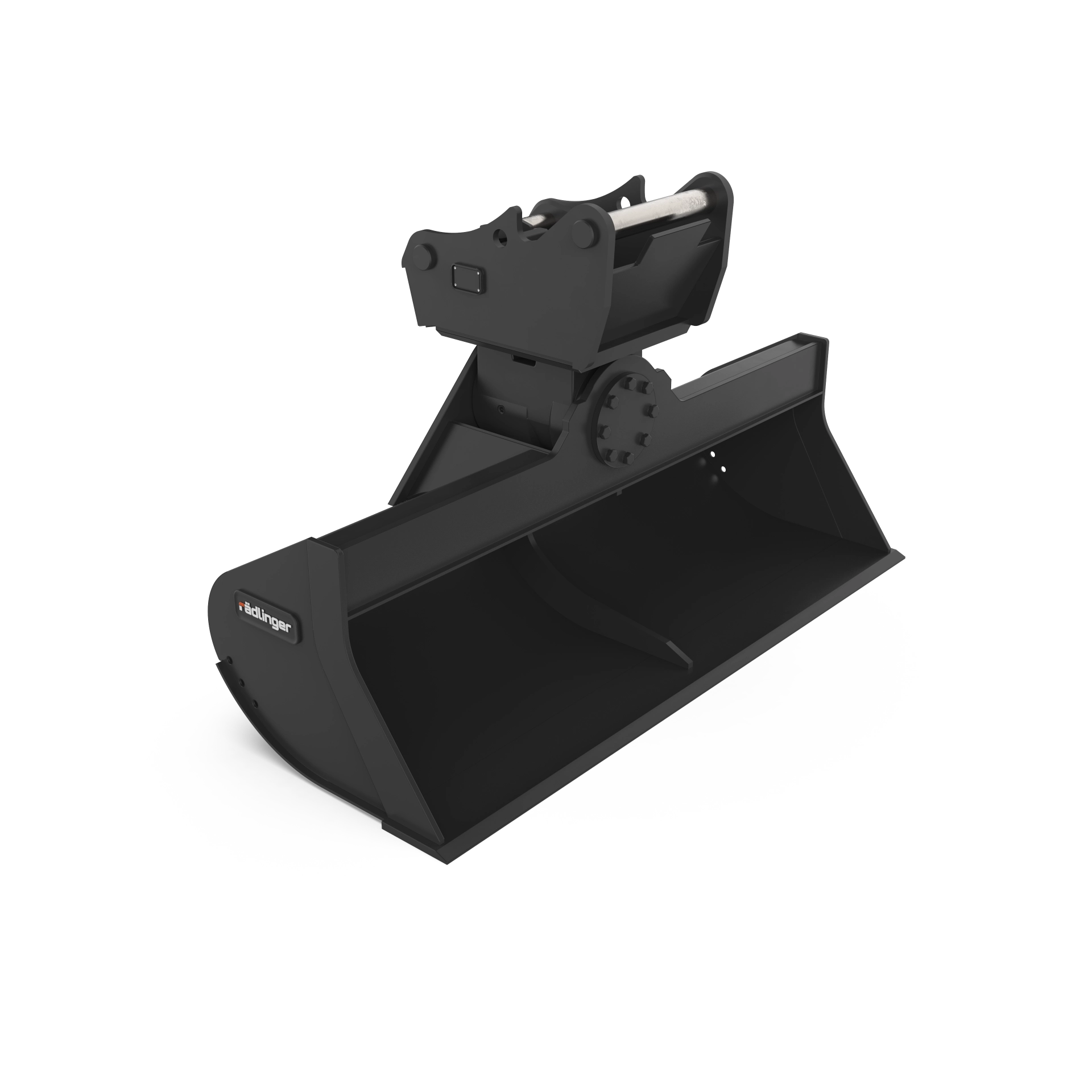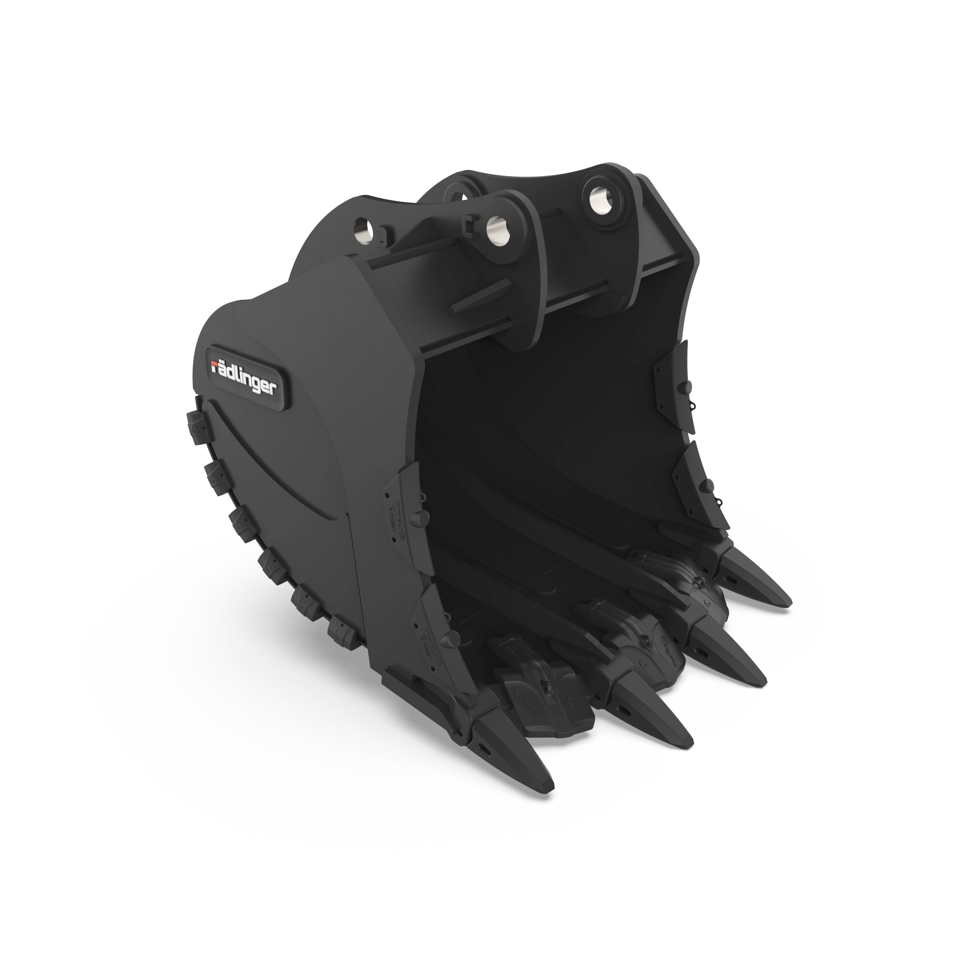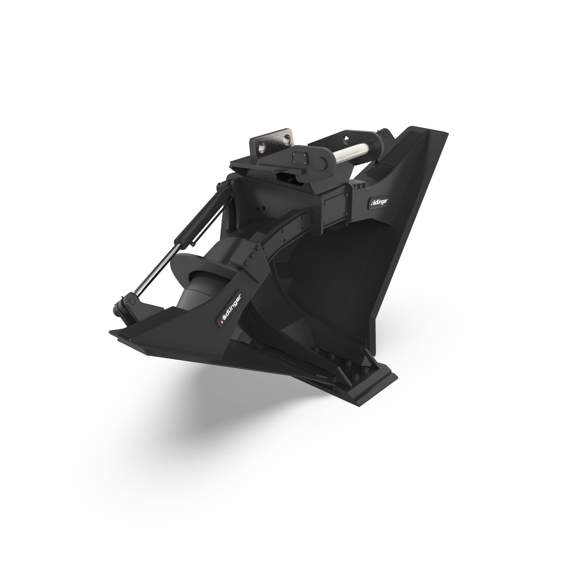Rädlinger Maschinenbau entwickelt Anbaugeräte für Baumaschinen jeder Größenklasse. Die Herausforderung bei der Katalogisierung liegt in der extremen Varianz: Das Spektrum reicht von kompakten Tieflöffeln für Minibagger bis zu 260 Tonnen schweren Mining-Geräten. Das Ziel war eine Bildsprache, die diese technischen Unterschiede objektiv vergleichbar macht.